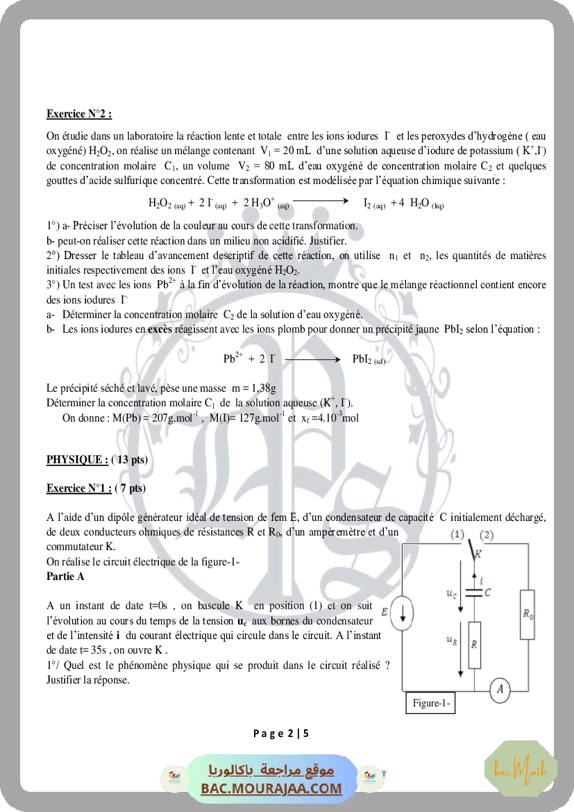 lycee pilote siliana devoir controle 1 physique bac math