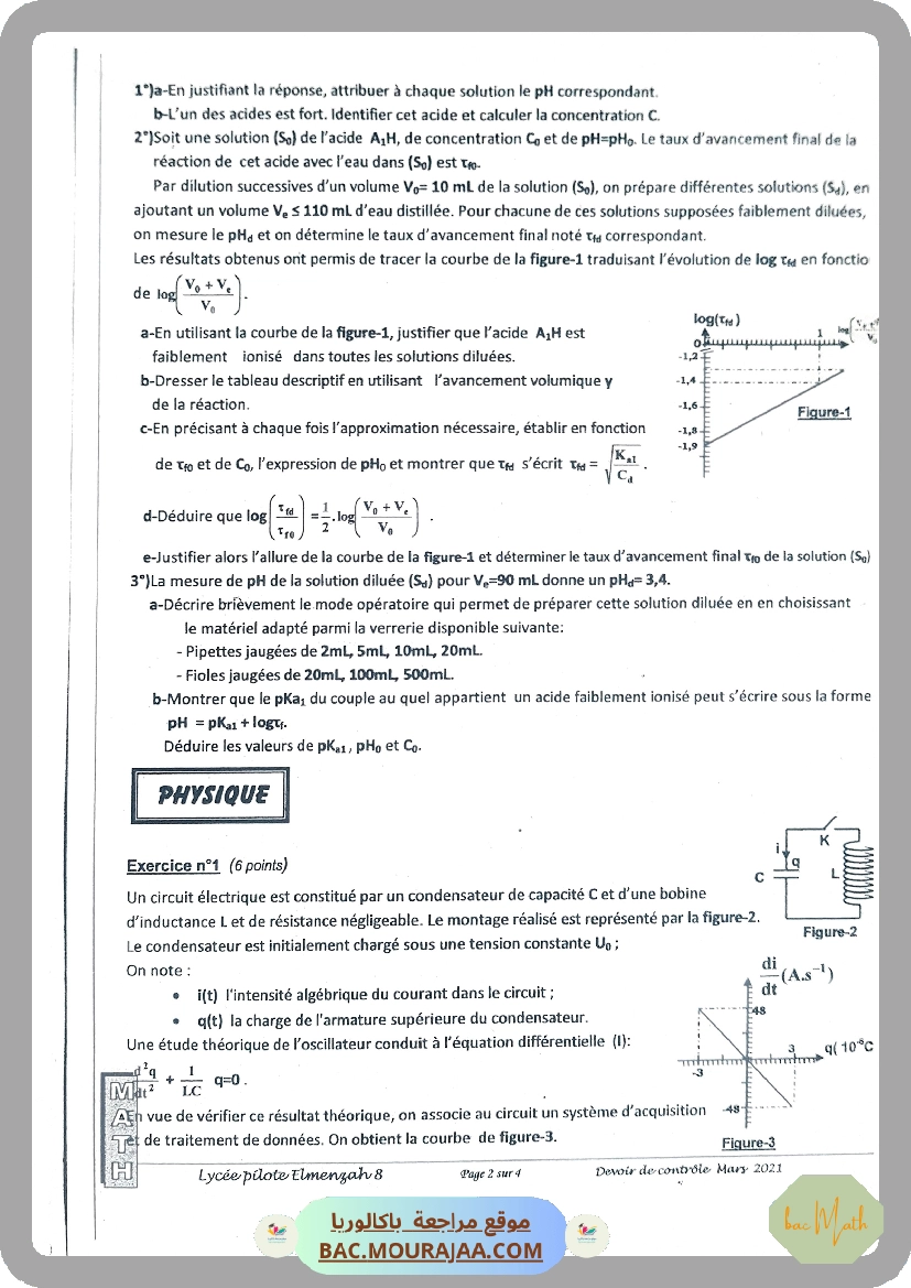 lycee pilote menzah devoir controle 2 physique bac math