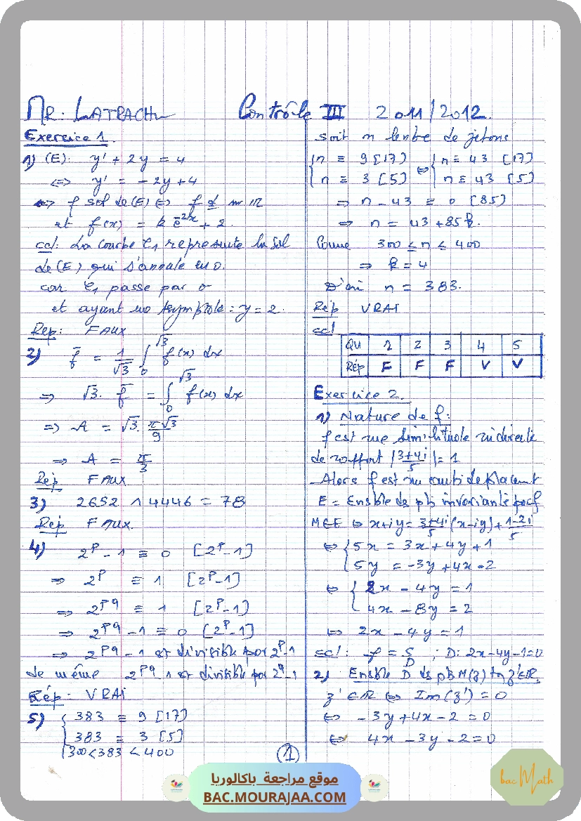 devoir corrigee lyce pilote aryana controle 3 math bac math 2012