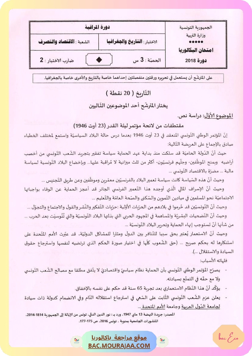 Sujet controle hist-geo Bac 2018 – Section eco
