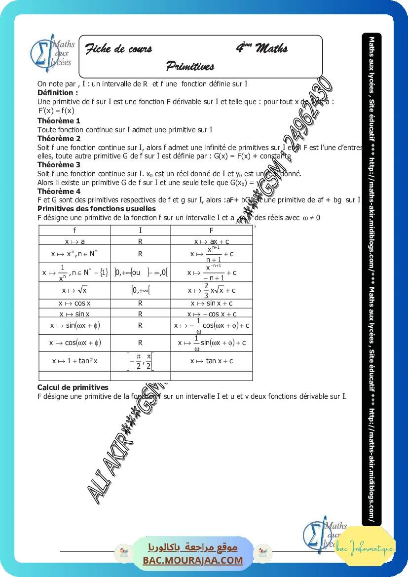 Cours Math Integrale Bac Math Mr Hammouda Fethi