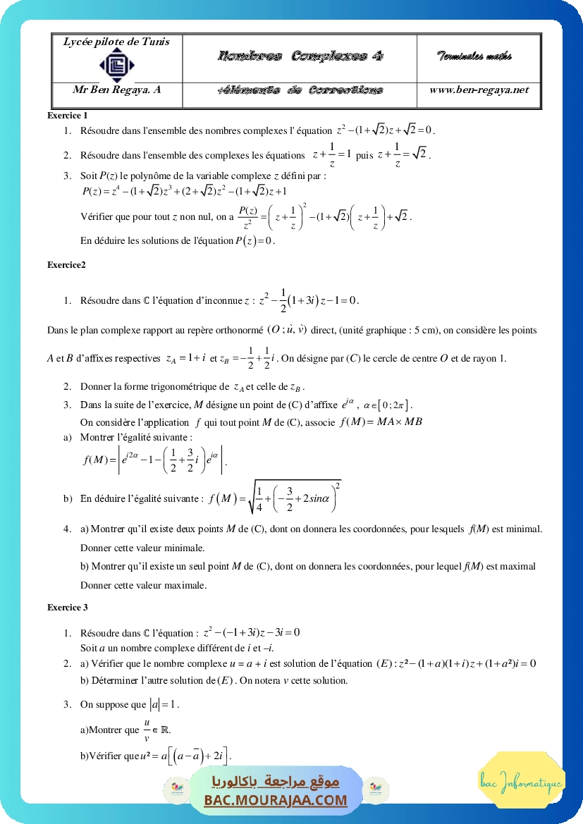 Le site bac.mourajaa.com est une plateforme éducative tunisienne