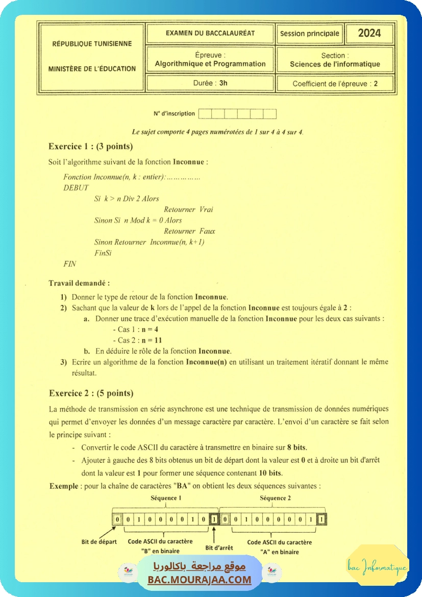 Le site bac.mourajaa.com est une plateforme éducative tunisienne