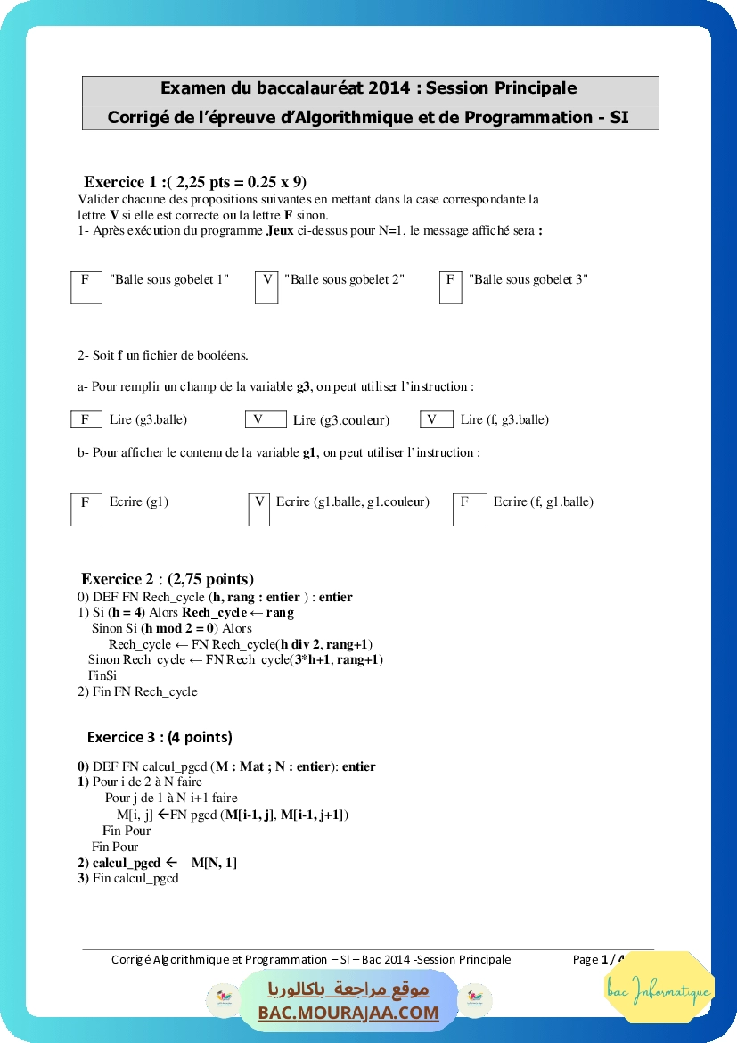 Le site bac.mourajaa.com est une plateforme éducative tunisienne