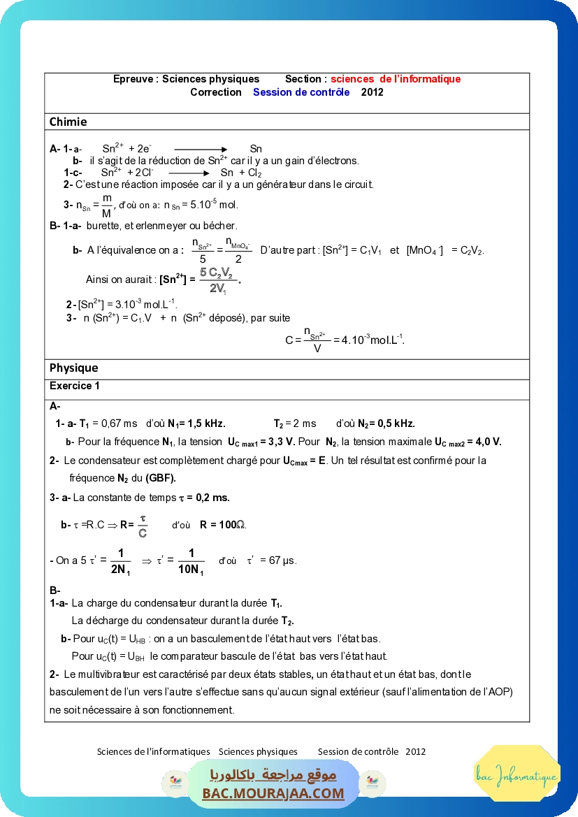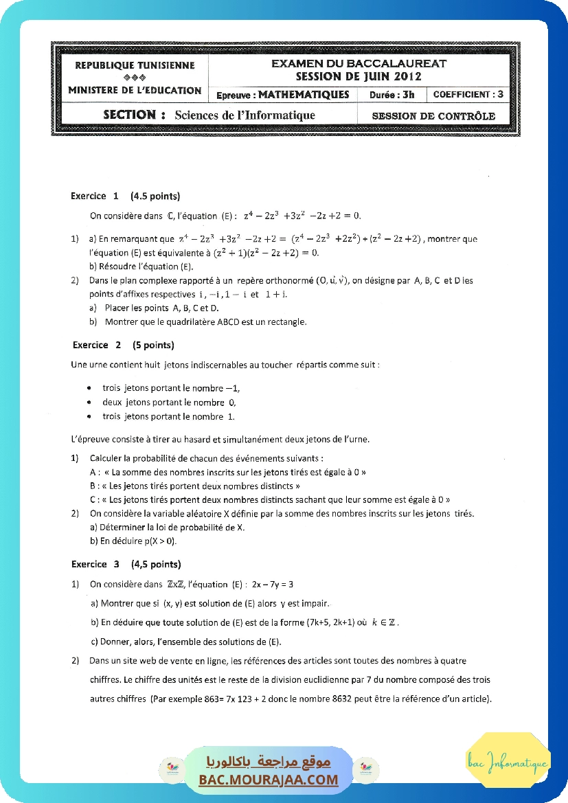 Le site bac.mourajaa.com est une plateforme éducative tunisienne