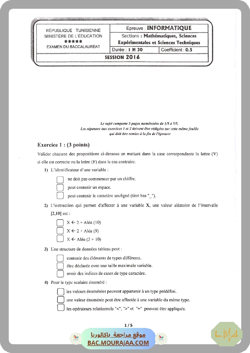 Le site bac.mourajaa.com est une plateforme éducative tunisienne