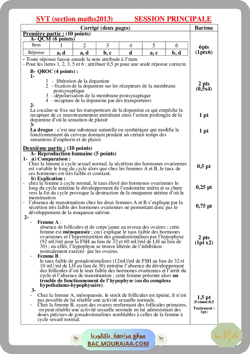 Corrigé principale svt Bac 2013 – Section math