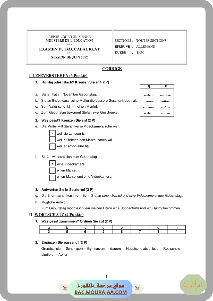 Le site bac.mourajaa.com est une plateforme éducative tunisienne