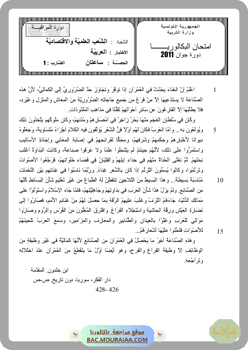 Le site bac.mourajaa.com est une plateforme éducative tunisienne