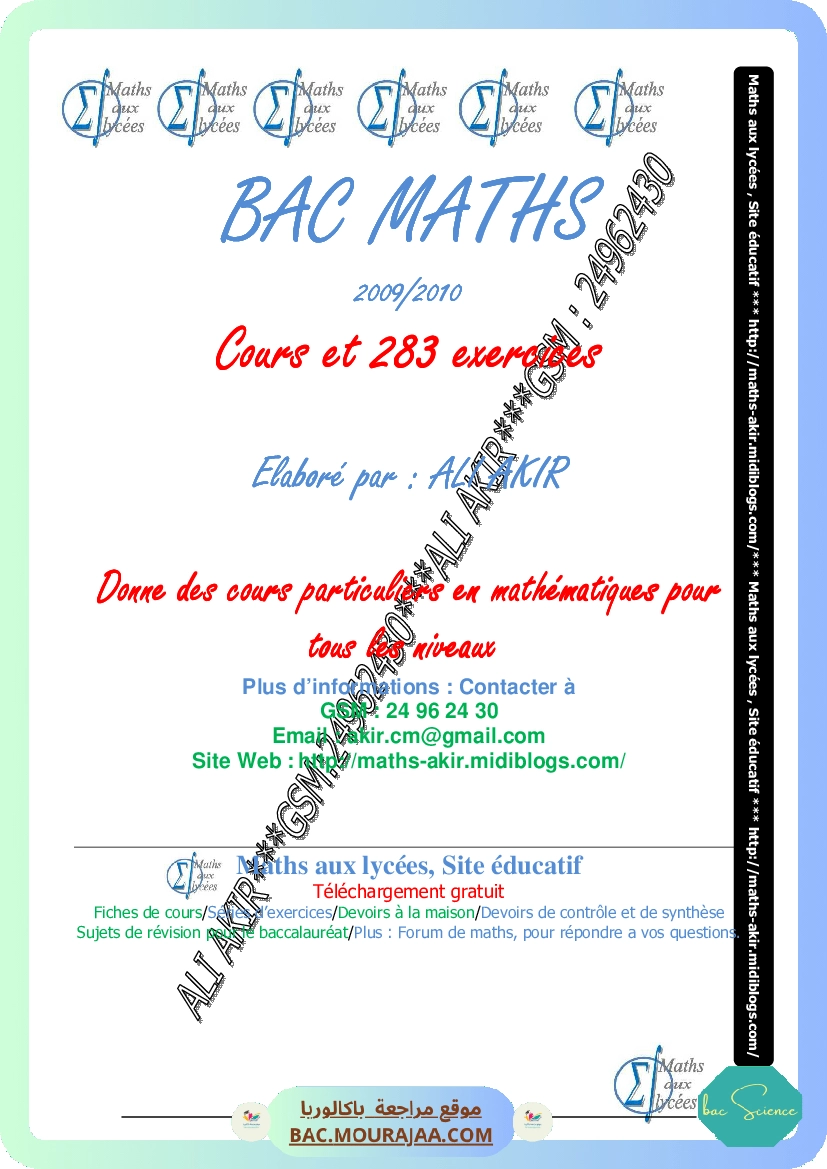 livre cour et series bac math ali akir