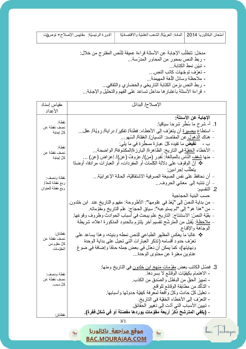 Corrigé principale arabe Bac 2014 – Section technique