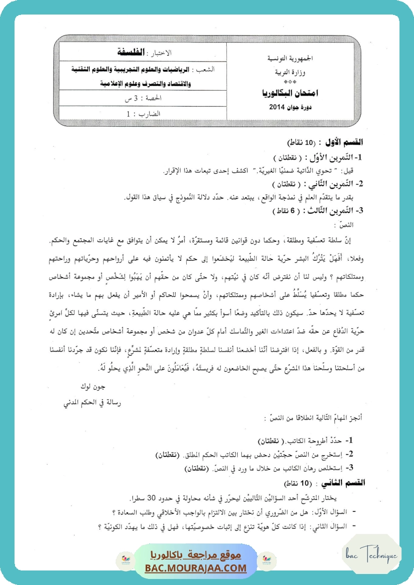 Le site bac.mourajaa.com est une plateforme éducative tunisienne