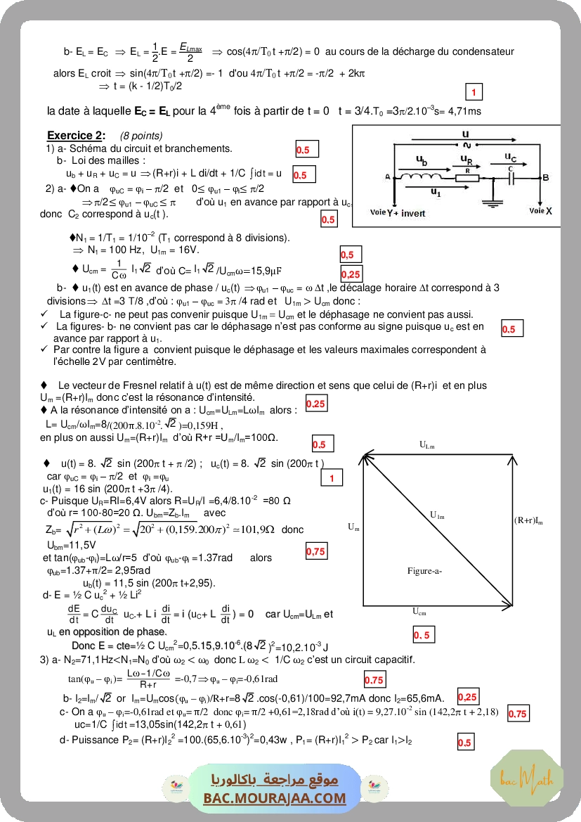 devoir corrige controle 2 physique lycee pilote sfax bac math 2015