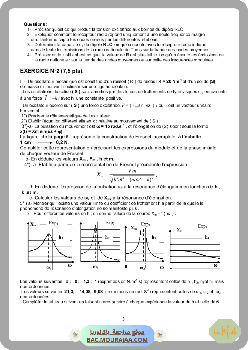 lycee pilote nabeul devoir synthese n2 physique bac math