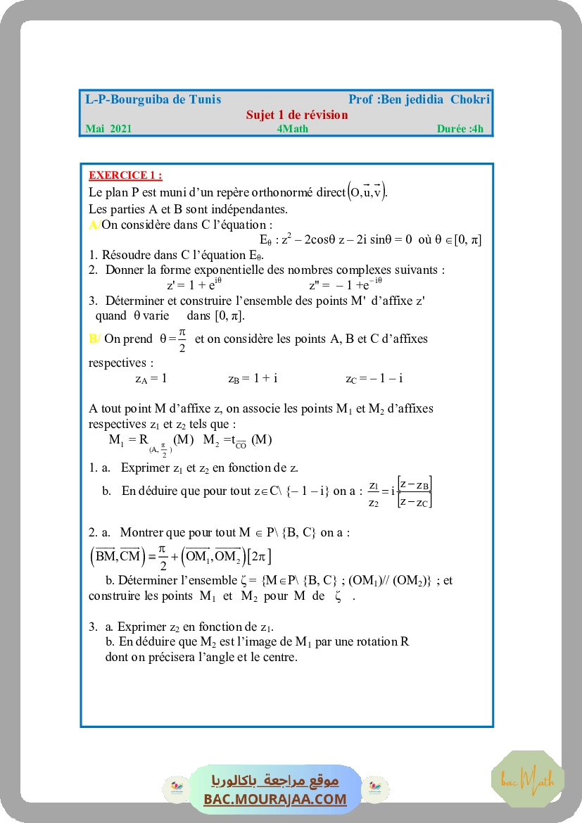 SUJET 1 BAC MATH 2021 LPBT