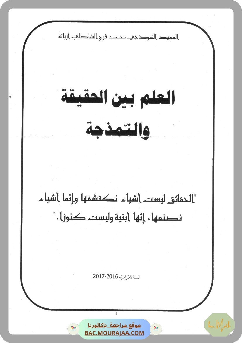 العلم بين الحقيقة و النمذجة معهد اريانة النموذجي