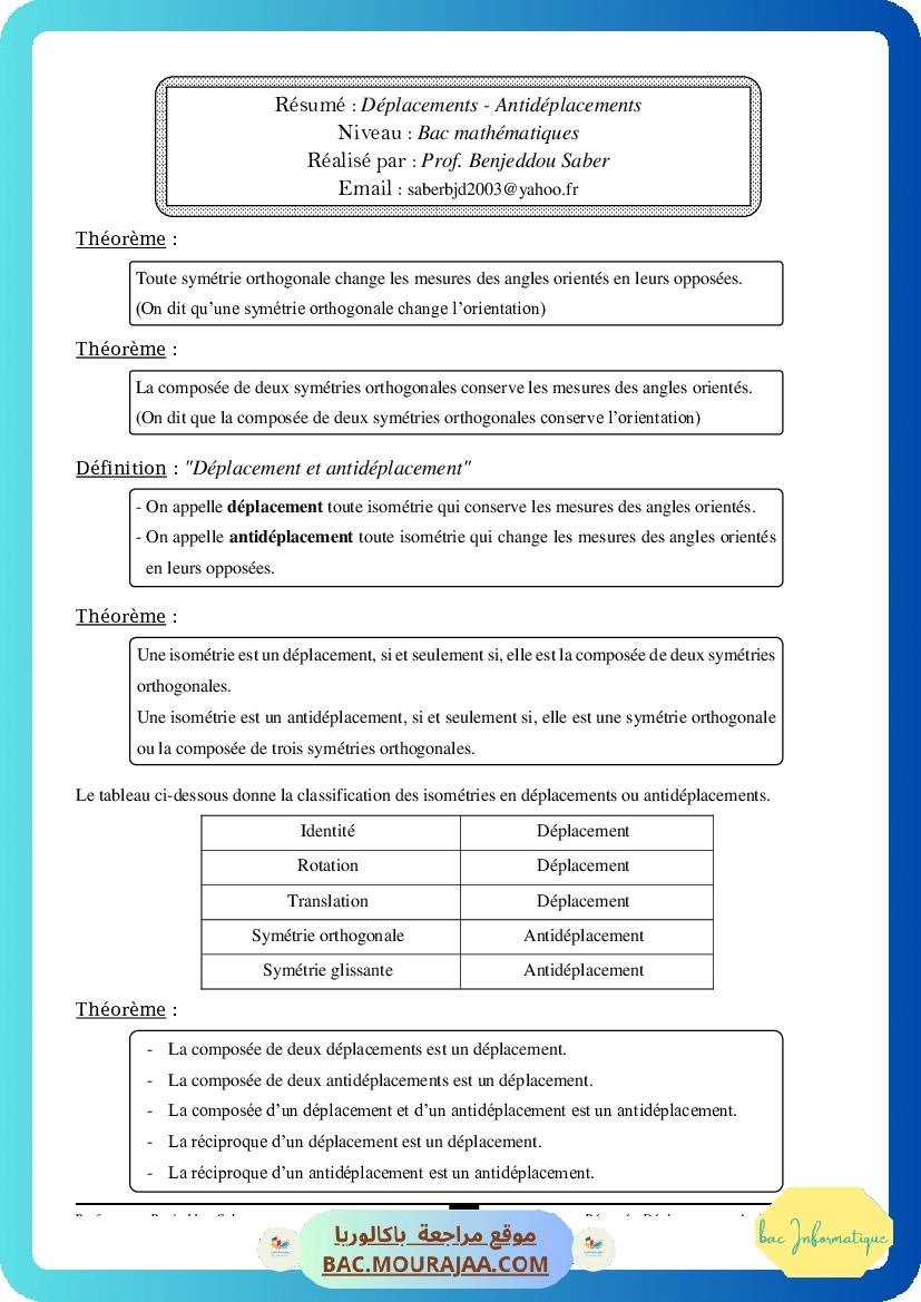 Cours Math Deplacement Antideplacement Bac Math Mr Hammouda Fethi