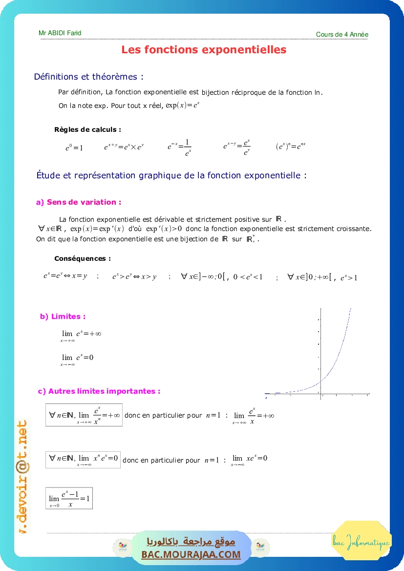 Cours Math Fonctions exponentielles Bac Math Mr Abidi Farid