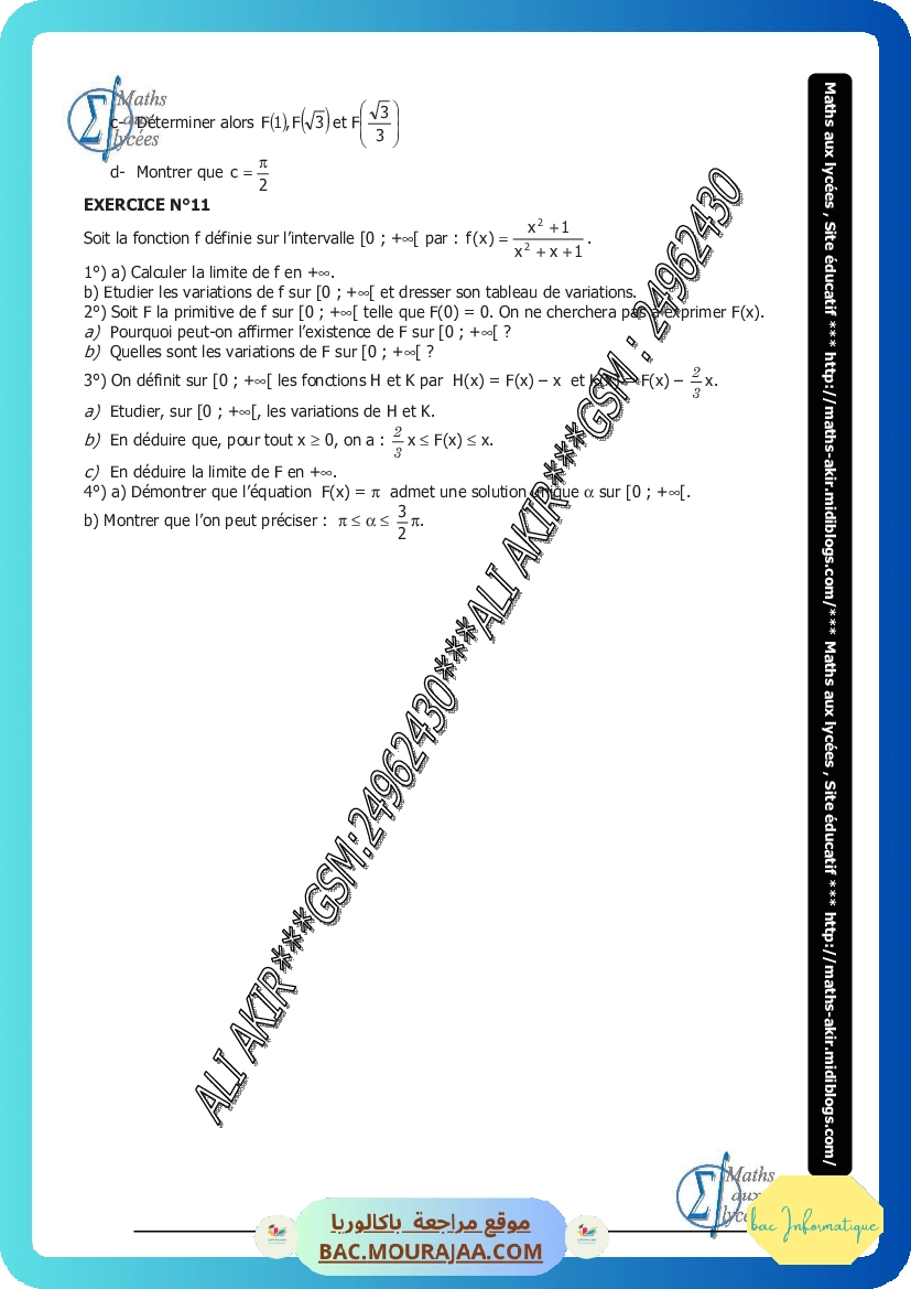 Cours Math Integrale Bac Math Mr Hammouda Fethi