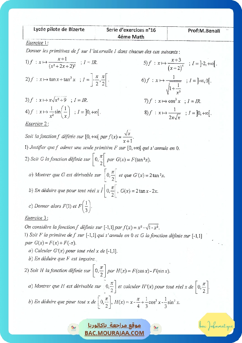 Le site bac.mourajaa.com est une plateforme éducative tunisienne