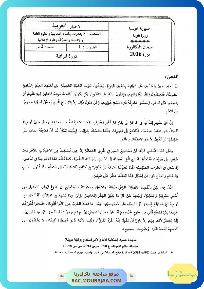 Sujet controle arabe Bac 2016 – Section info