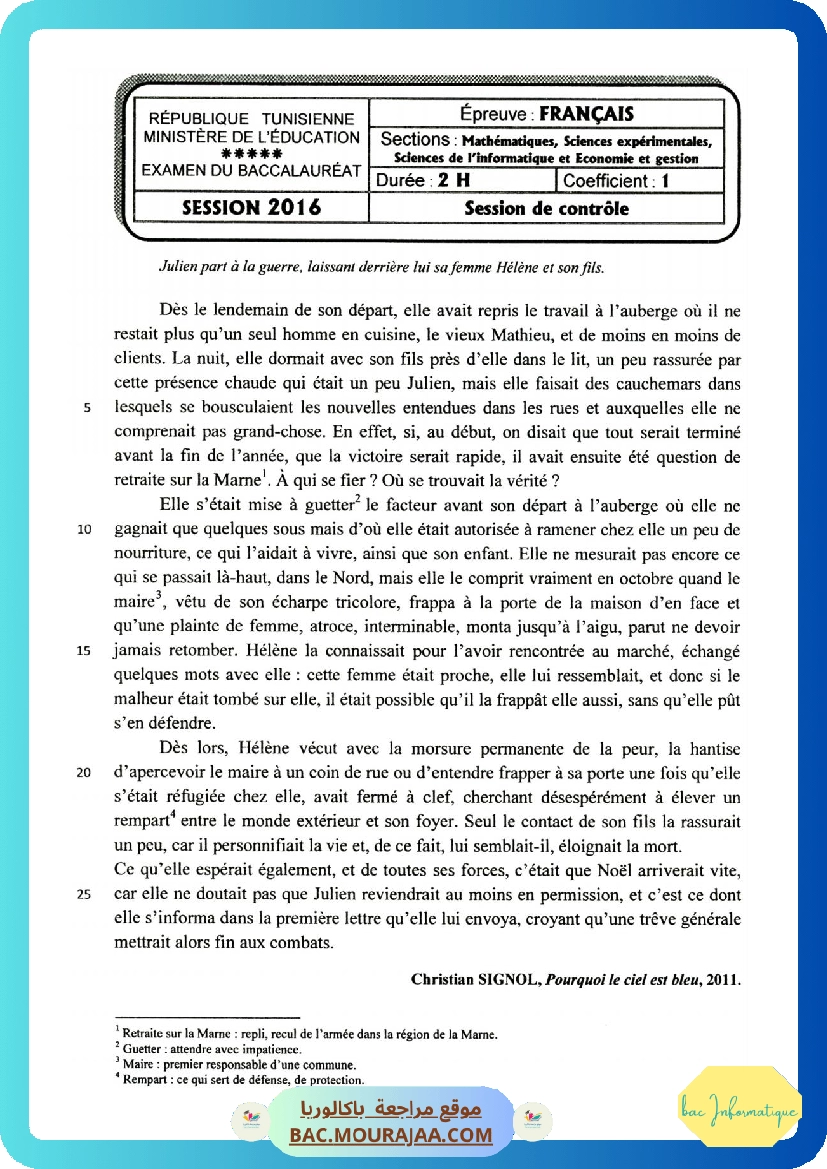 Le site bac.mourajaa.com est une plateforme éducative tunisienne