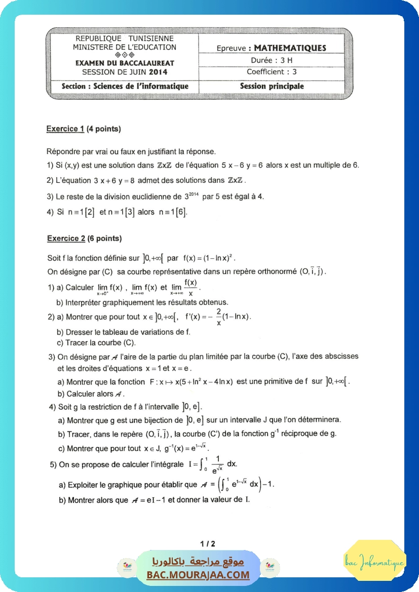 Le site bac.mourajaa.com est une plateforme éducative tunisienne