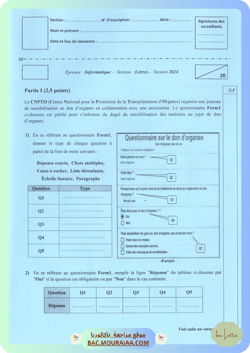 Le site bac.mourajaa.com est une plateforme éducative tunisienne