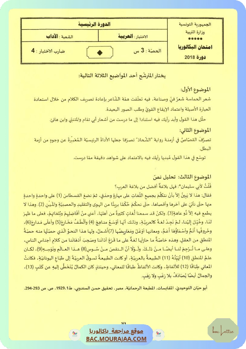Le site bac.mourajaa.com est une plateforme éducative tunisienne