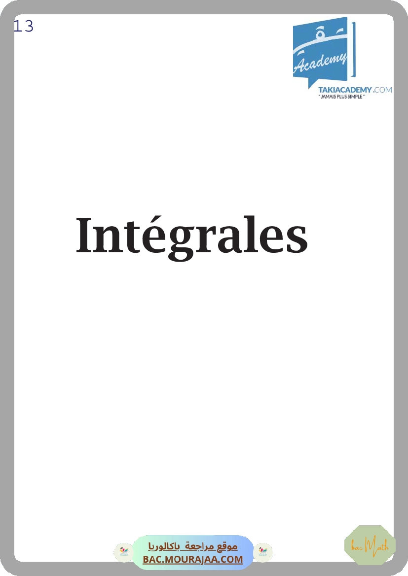 Cours Math Integrale Bac Math Mr Hammouda Fethi