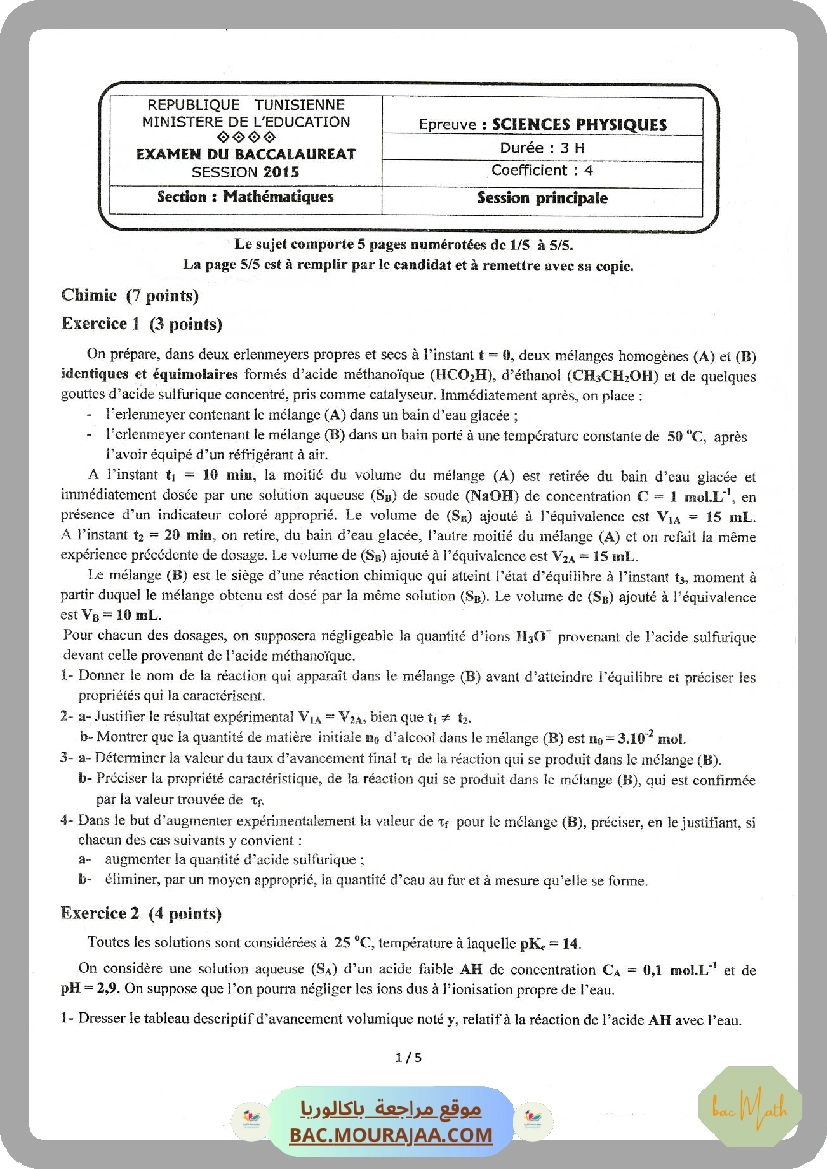 Le site bac.mourajaa.com est une plateforme éducative tunisienne