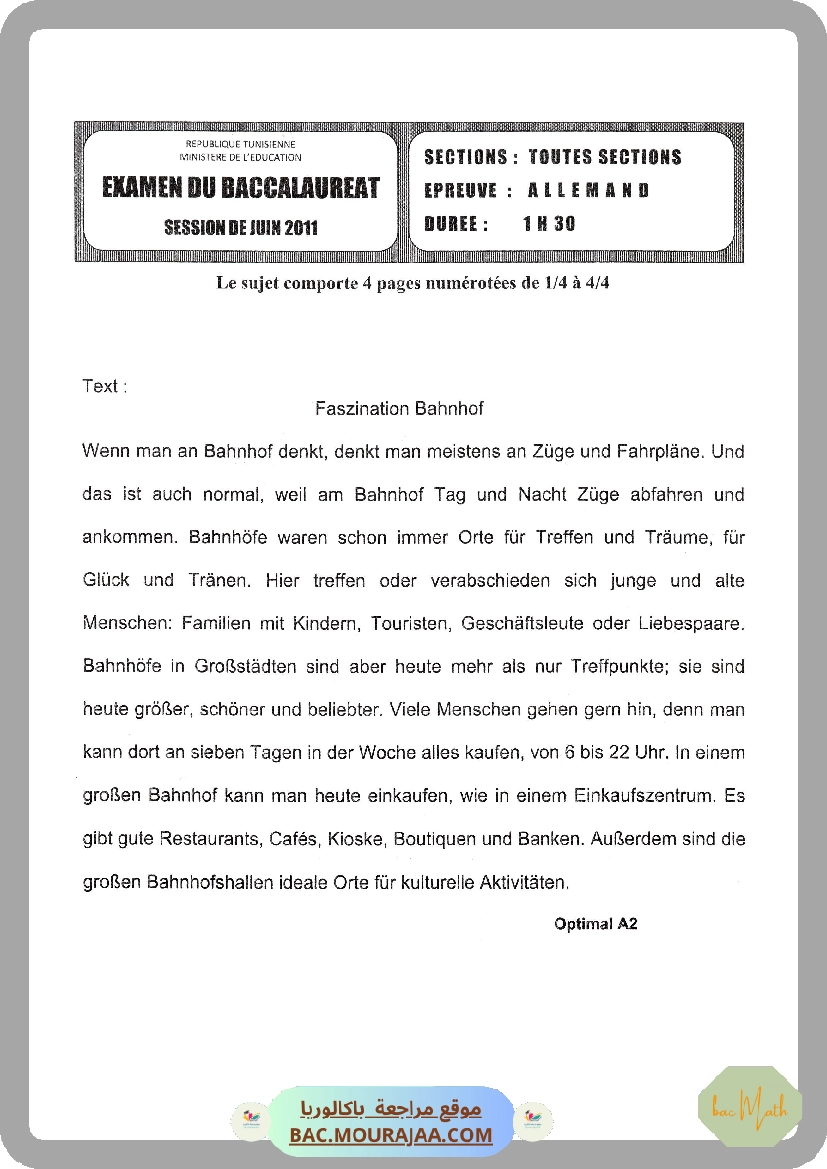 Sujet principale arabe Bac 2011 – Section math