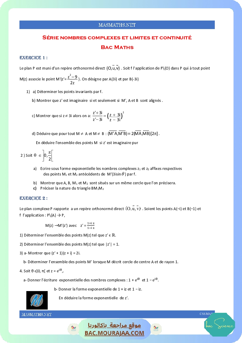 • Series exercices Bac science