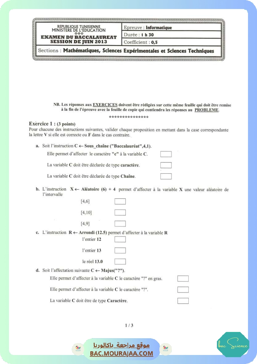 Le site bac.mourajaa.com est une plateforme éducative tunisienne