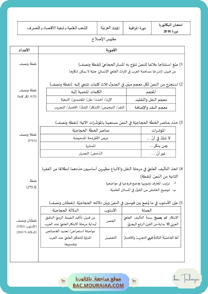 Le site bac.mourajaa.com est une plateforme éducative tunisienne