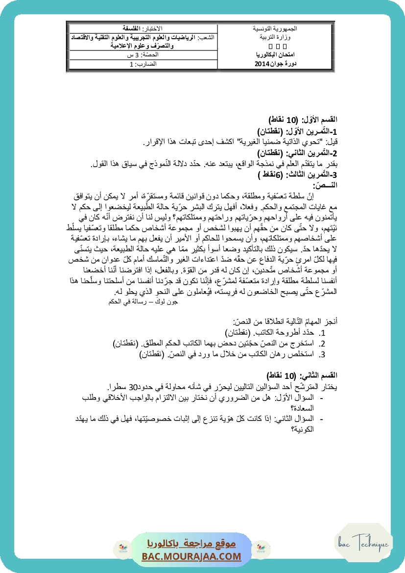 Le site bac.mourajaa.com est une plateforme éducative tunisienne